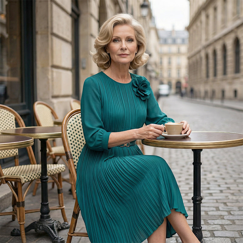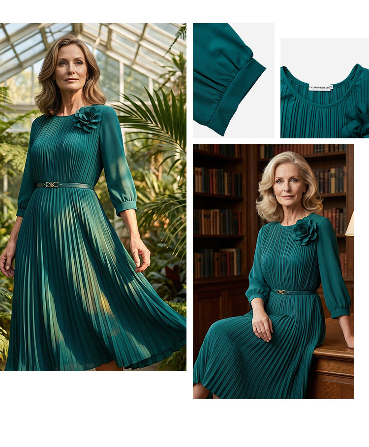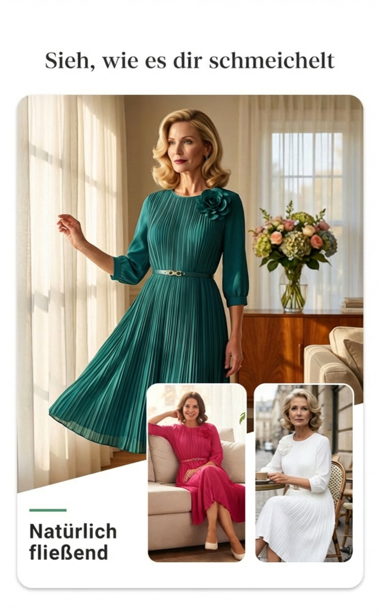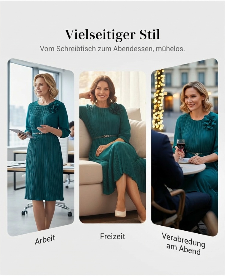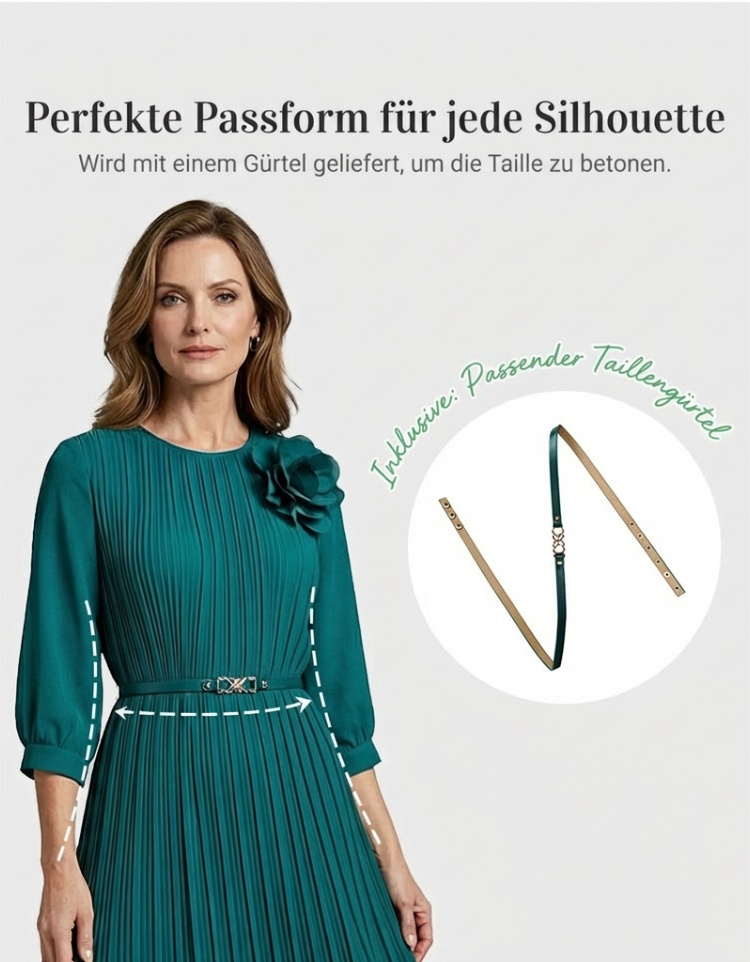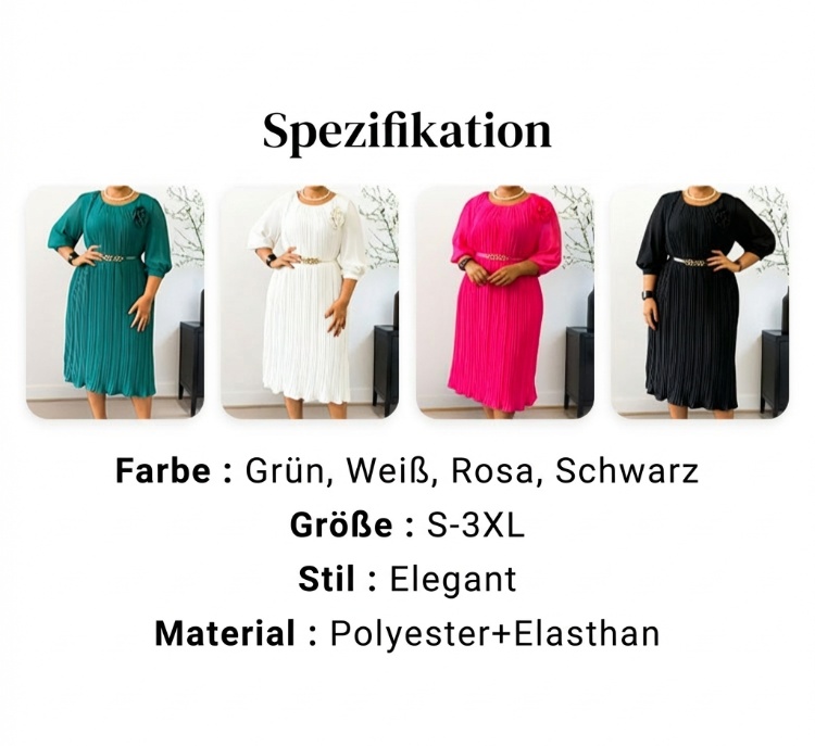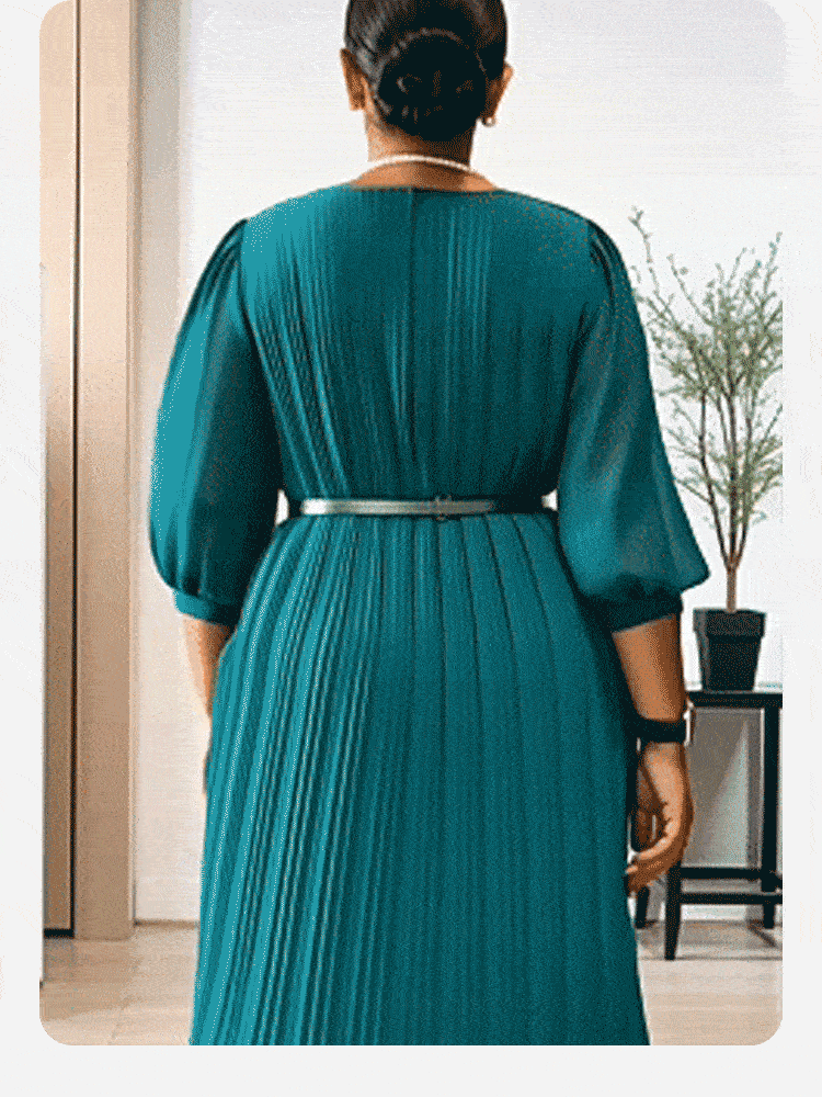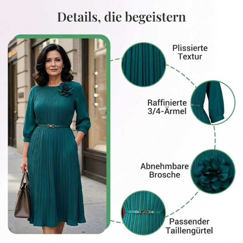 Elegantes plissiertes Midikleid mit 3/4-Ärmeln und Gürtel für Damen🔥Kauf 2 Artikel versandkostenfrei🔥