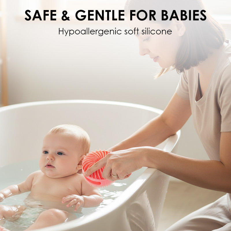 GENTLE SILICONE BRISTLES: Crafted from soft, skin-friendly TPR, the brush gently cleanses without scratching or irritating. It is safe for all skin types, including sensitive skin and babies, providing a worry-free experience.
