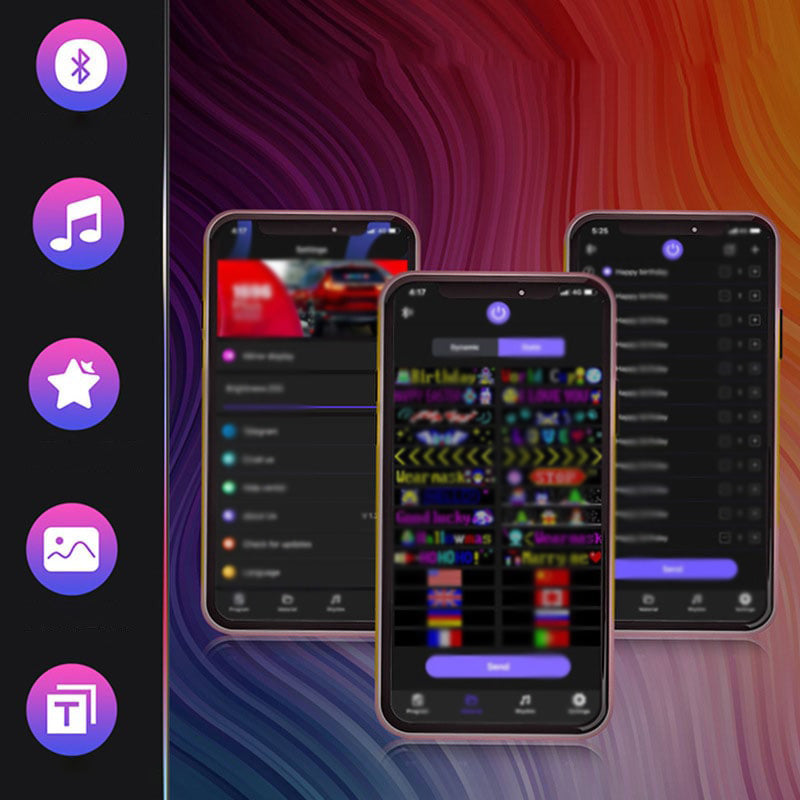 Verbinden Sie die LED-Matrix über die APP, Sie können Texte, Muster und Animationen nach Ihren eigenen Bedürfnissen und Szenen selbst gestalten und die Helligkeit und Geschwindigkeit perfekt an Ihre Bedürfnisse anpassen.