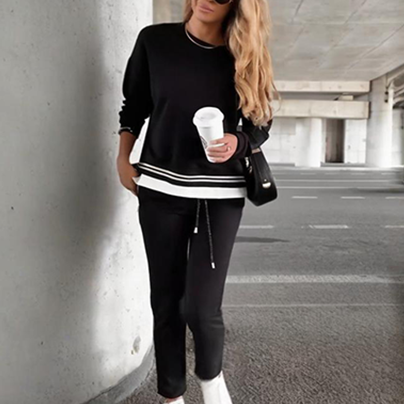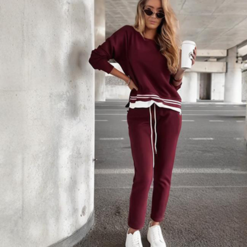 Package Includes: 1* Color-Block Round Neck Sweatshirt & Drawstring Pants Set