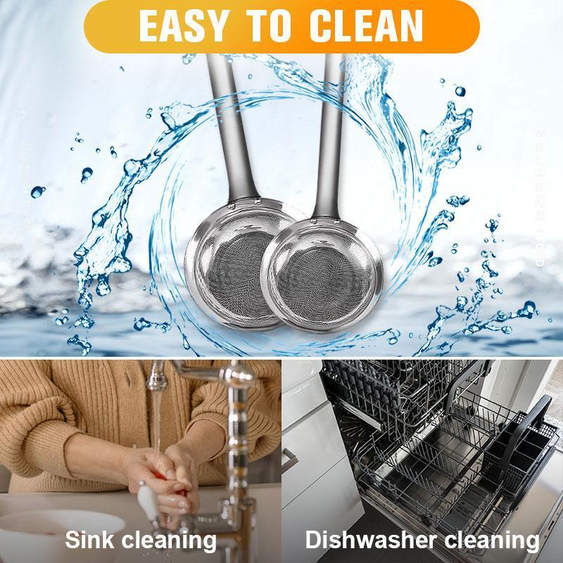 - Die feinen Filterlöcher können Ölflecken und andere kleine Rückstände leicht entfernen und machen Ihr Essen gesünder!