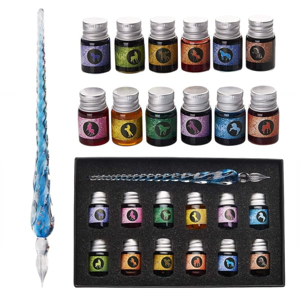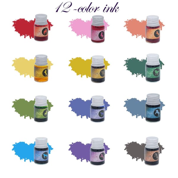 12 x 7 ml Farben Tinte enthalten Goldpulver, die Ihrer Kreation unglaublicher sind. Wenn Sie nach einer Tinte suchen, die schimmernd, hochreflektierende Farben sind, die leichte, archivieren und dauerhaft sind, arbeiten für die Illustration, Kalligraphiestifte, Dipstifte, Zeichenstift, dieses Kalligraphie -Tinten -Set sind Ihre beste Wahl. Schütteln Sie die Tintenflasche vor dem Gebrauch gut.
