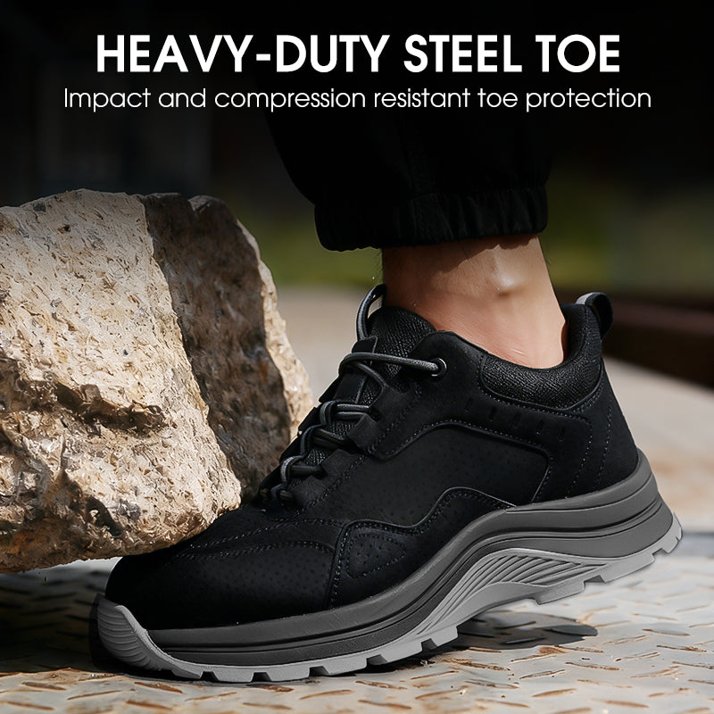 LIGHTWEIGHT & COMFORTABLE DESIGN - Combines robust safety features with an ergonomic fit. The widened steel toe prevents squeezing, and the overall lightweight construction reduces fatigue, making long work hours feel much more manageable.