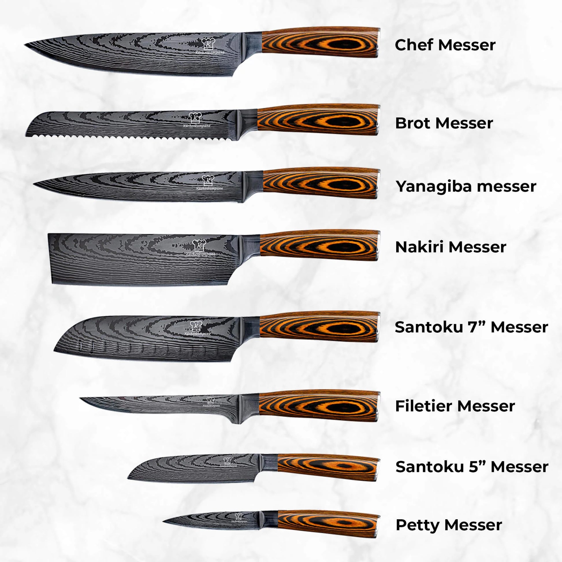 Typ: Entbeinungsmesser, Fleischmesser, Gebrauchsmesser, Kochmesser, Gemüsemesser