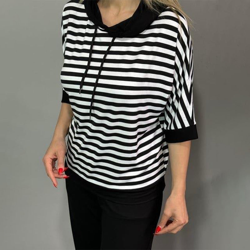 GESTREIFTES KAPUZENTOP â Dieses auffällige gestreifte Kapuzentop vereint sportliche und modische Elemente. Der leichte Stoff und die Kapuze mit Kordelzug bieten Komfort und Schutz und eignen sich daher sowohl fĂźr Lagenlooks als auch fĂźr den alleinigen Gebrauch in der Freizeit.