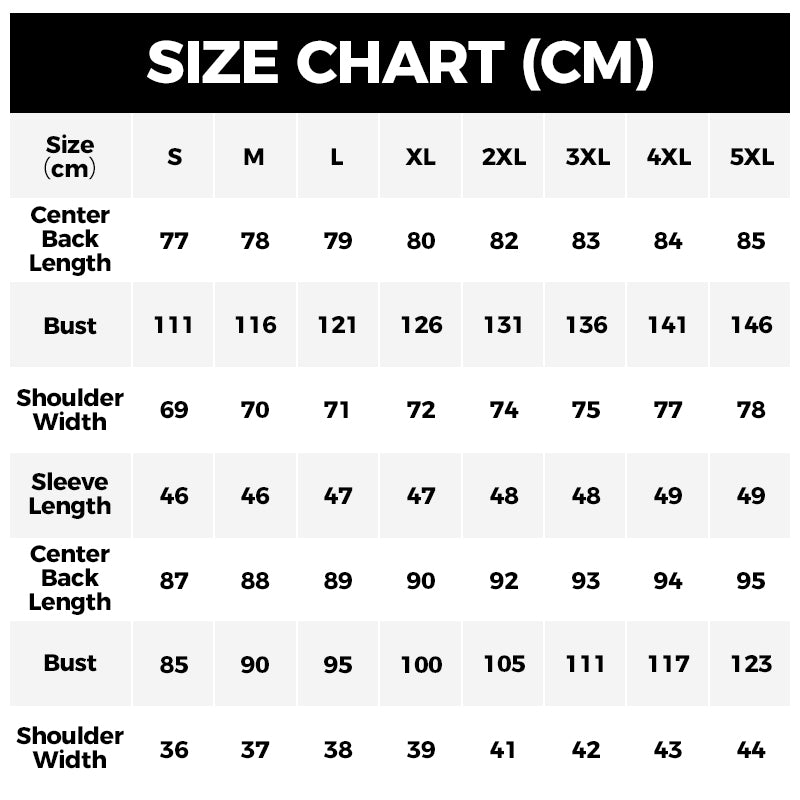 Größen: S, M, L, XL, 2XL, 3XL, 4XL, 5XL