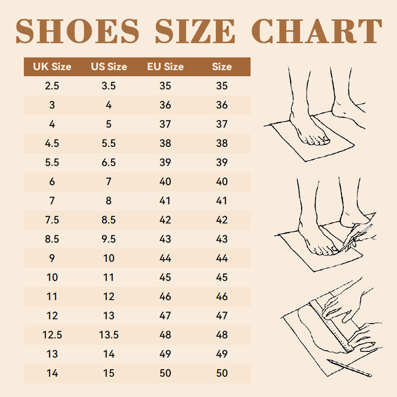 Wenn Sie breite oder dicke Füße haben, empfehlen wir Ihnen, eine Nummer größer zu wählen!